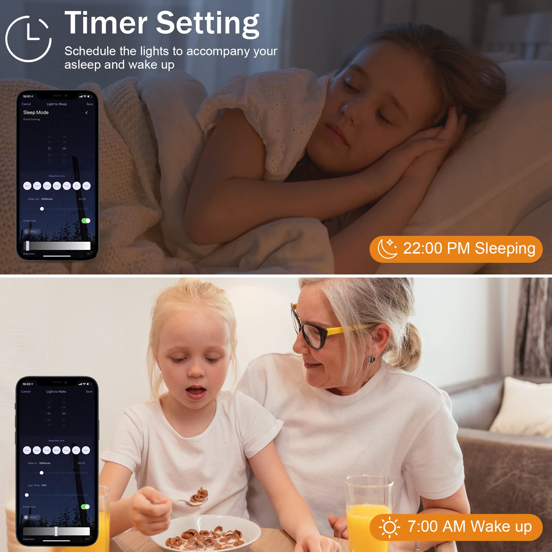 - Timer Function: Set a schedule to automatically turn on/off the cabinet light by smartphone App
