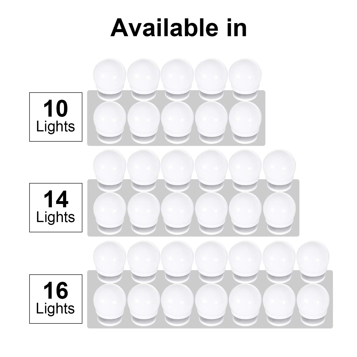 - 【Upgraded and Extended Version 】These led vanity mirror lights are waterproof. Makeup mirror lights, which are suitable for most mirrors. The length between each bulb can be adjusted at will for your needs freely to keep your vanity makeup set beautiful and neat and will fit most makeup mirrors, full-length mirrors, toilet tables.